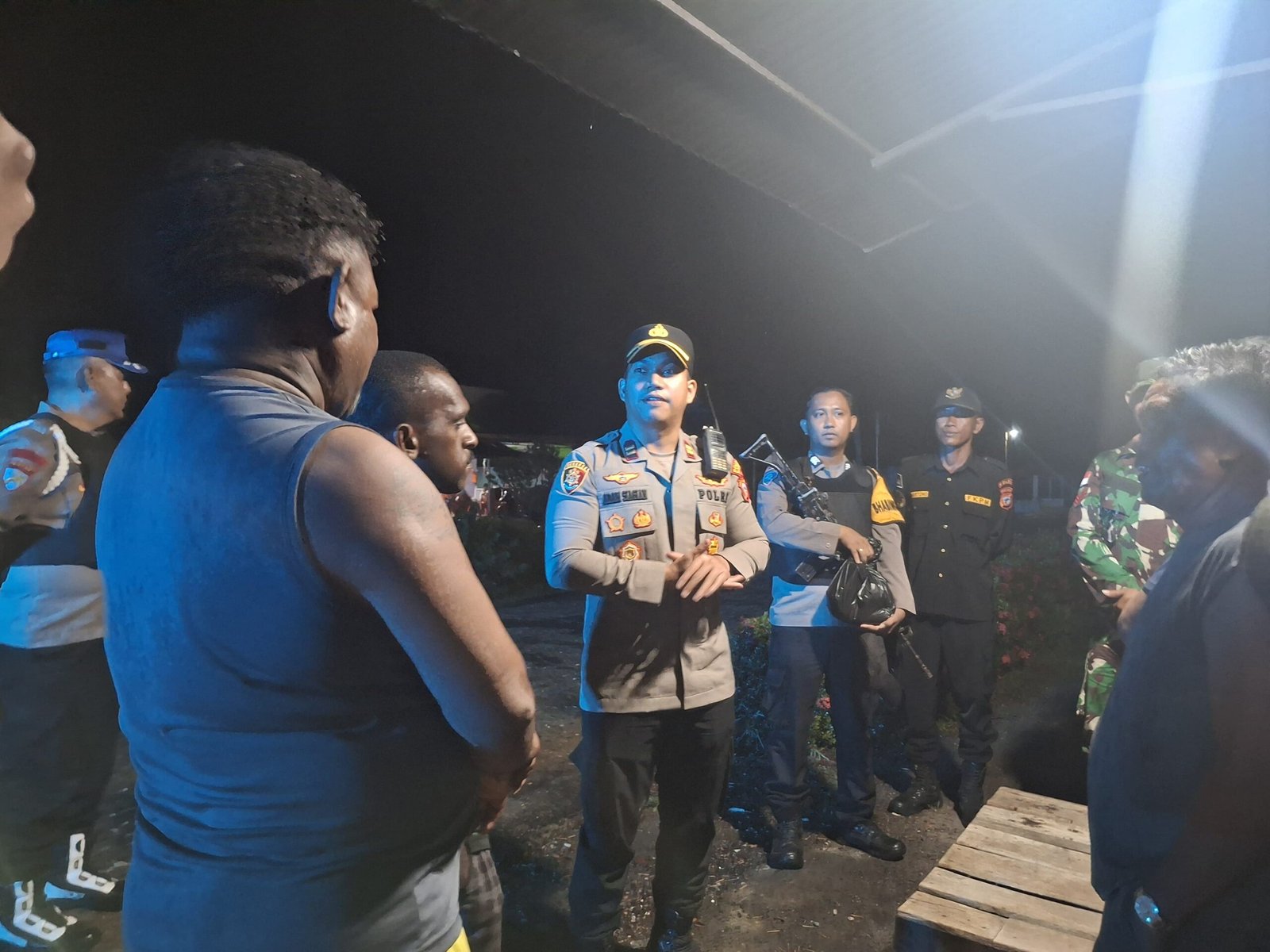 Apel gabungan berlangsung di Lapangan Mapolsek Nabire Barat sekitar pukul 19.20 WIT. Kegiatan ini diikuti para Kanit Polsek Nabire Barat, personel Polsek Nabire Barat, Bhabinkamtibmas, Babinsa, Forum Kemitraan Polisi dan Masyarakat (FKPM), Senkom, serta Linmas.