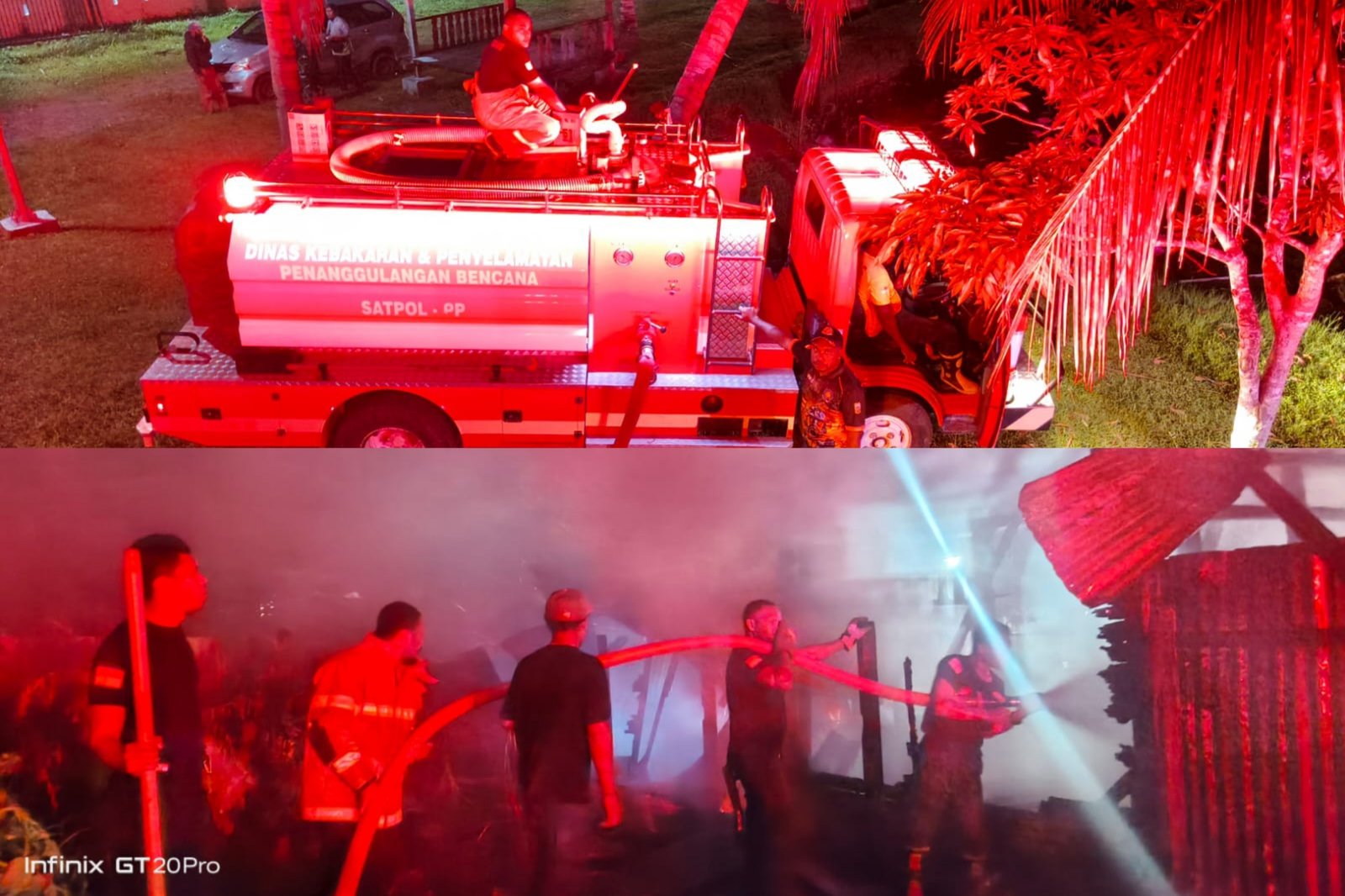Kebakaran melanda satu unit rumah kontrakan di Girimulyo, Kabupaten Nabire, pada Selasa (10/1/2026) dini hari sekitar pukul 01.12 WIT. (Foto: Humas Damkar Papua Tengah)
