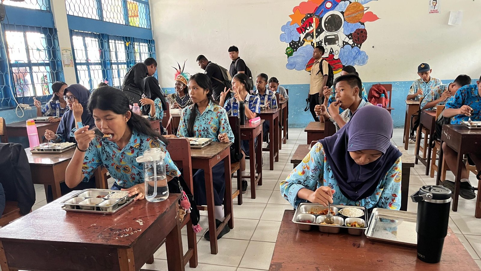 Program MBG di SMP N 1 Nabire menjadi salah satu langkah konkret Pemerintah Kabupaten Nabire dalam mendukung Gerakan Nasional Percepatan Penurunan Stunting dan Pemenuhan Gizi Anak Sekolah.