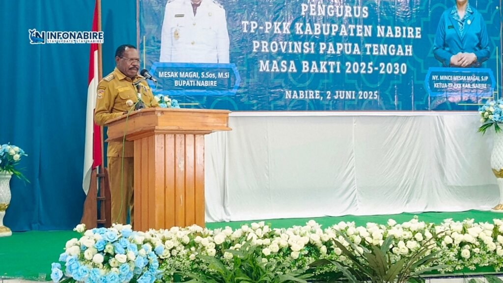 Dalam sambutannya, Bupati Nabire, Mesak Magai, menyampaikan ucapan selamat dan berharap TP PKK menjadi garda terdepan dalam mendukung pembangunan keluarga sejahtera.