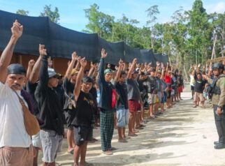 “Ko Pilih Naik atau Sa Lompat?” Pria 22 Tahun di Kalibobo Usir Petugas dan Goyang Tiang Lampu