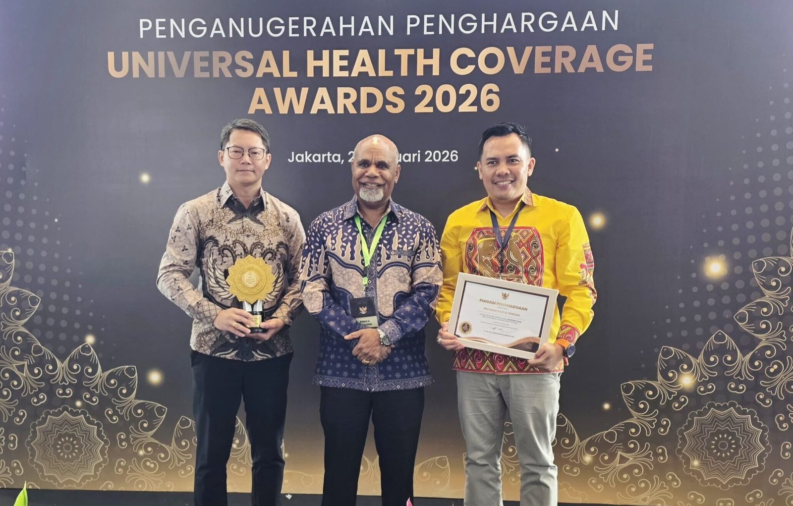 Provinsi Papua Tengah meraih Universal Health Coverage (UHC) Award 2026 Kategori Utama. (Foto: Humas Pemprov Papua Tengah/Abeth)