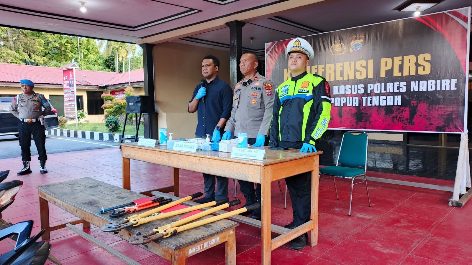 Pengungkapan kasus ini disampaikan melalui press release yang dipimpin oleh Wakapolres Nabire, Kompol Dr. Pieter Kendek, didampingi Kasat Reskrim Polres Nabire serta Kasat Lantas Polres Nabire, Iptu Exaudio P. R. Hasibuan.